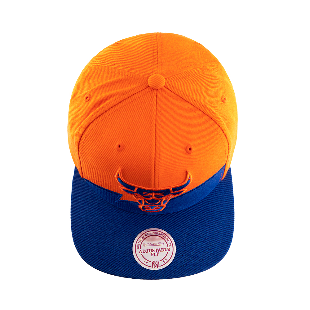 Gorro Jockey snapback mitchell and ness chicago bulls visera plana olas naranjo azul